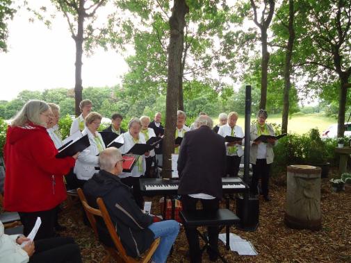 Am 25.06.2017 fand wieder ein Taufgottesdienst auf dem Kolonistenhof in Neu Duvenstedt in der Baumkirche statt, den wir mit Gebet und Gesang unterstützten. Es war nur einfach schön, die Taufe und den Gottesdienst mit unserem Gesang zu umrahmen.